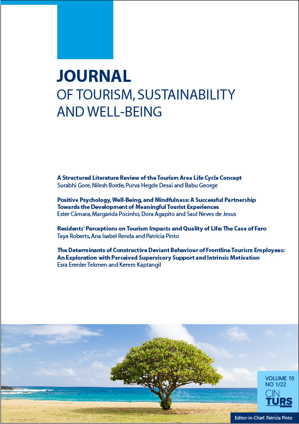 This first issue of 2022 is composed of four articles. The first article offers a structured literature review on the tourism area life cycle and offers insights on how this theory can contribute to tourism planning and strategy analysis. The remaining three articles, one theoretical and two empirical, are mainly related to Tourism and its stakeholders’ well-being. The second article is dedicated to positive psychology and mindfulness, and their relevance to developing meaningful tourism experiences and benefiting individuals' well-being while visiting a destination. The third article presents the residents’ perspective and how their perceptions of tourism impacts are affecting their quality of life regarding several dimensions: material, community life, health and safety feelings domain and emotional life. The fourth paper leads the reader to those working in the tourism sector, focusing on front-line hotel employees and how their internal motivations affect the relationship between perceived supervisory support and constructive deviance behaviours.