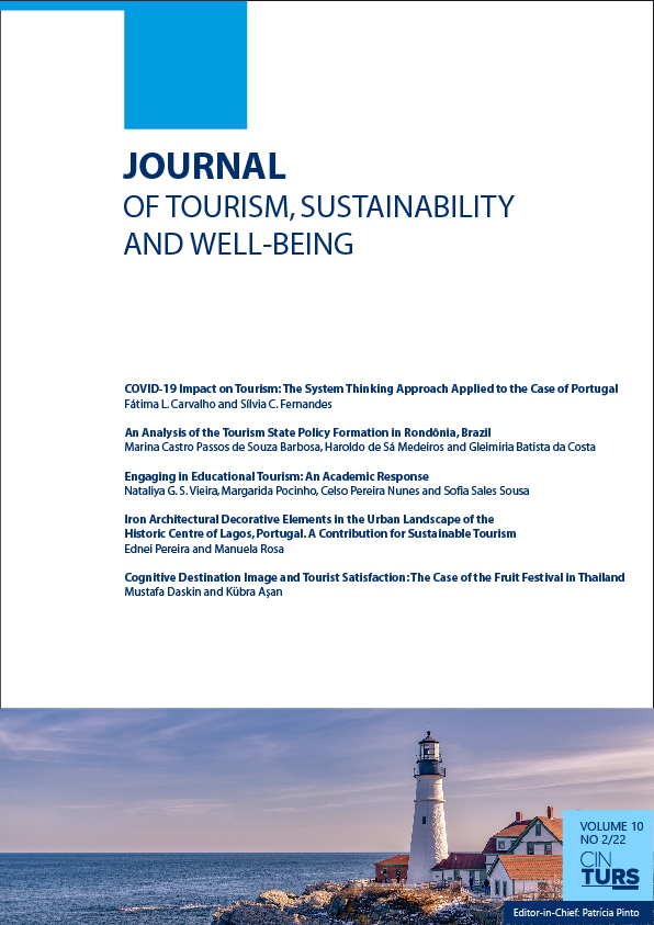 This second issue of 2022 is composed of five articles, mostly of qualitative nature. The first article uses an innovative approach, system thinking, to explore the importance of policy-making activities in tourism recovery of covid 19 impacts in Portugal. The second article is also dedicated to the analysis of the policy proposals to promote tourism, focusing on the state of Rondônia, in Brazil. The third article addresses the topic of educational tourism and how it can positively impact tourism-related education with subsequent social, economic and environmental benefits to destinations. The fourth article is a contribution to cultural sustainability. It explores how giving aesthetic value to the urban landscape, and cultural identity may enhance the attractiveness of a historic centre through outdoor cultural routes. The last article intends to contribute to the literature on festival events and empirically shows how the cognitive image of the event can increase tourist satisfaction.