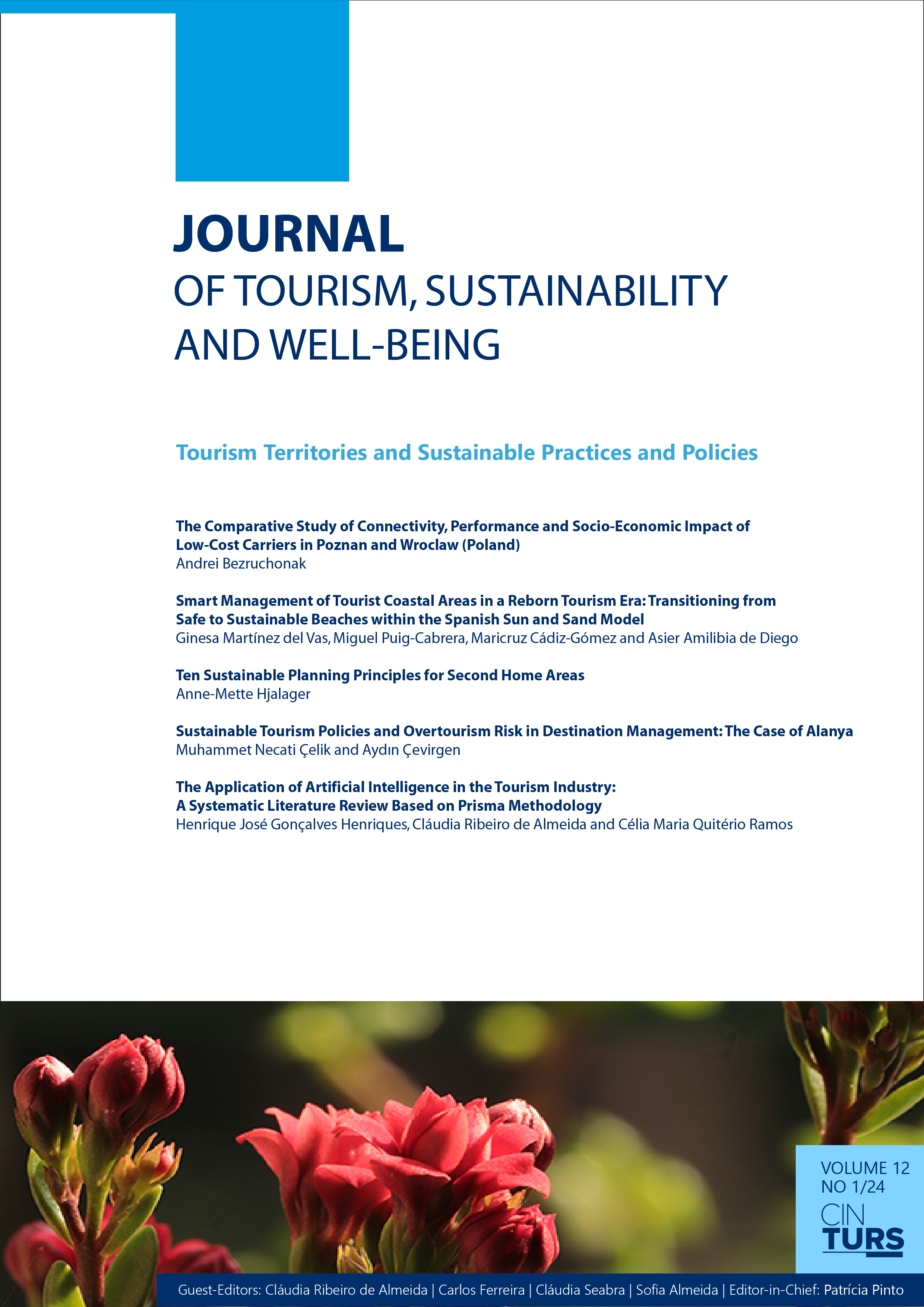In this edition, we explore diverse methodologies used in tourism research, reflecting the multifaceted challenges and opportunities this sector presents. Article 1 presents a comprehensive study that leverages comparative, statistical, and geographic methods to assess the socio-economic impacts of low-cost carriers in Polish airports, demonstrating the nuanced effects of air travel on regional development. This approach underscores the importance of multidimensional analysis in understanding the interplay between transportation and tourism. Article 2 reflects an investigation into Spanish beaches, employing an online survey methodology, gathering insights from Destination Management Organisations to evaluate the efficacy of the Safe Tourism Certification. This study highlights the complexities of managing tourist spaces in a post-pandemic world, pointing to the need for innovative solutions in spatial management and sustainability. Article 3 uses a mixed-methods approach in examining Danish second homes and combines quantitative data with qualitative insights, offering a holistic perspective on sustainable planning. This research underlines the significance of integrating various data sources to inform policy and planning, ensuring that tourism development aligns with broader sustainability goals. Article 4 adopts a qualitative analysis in Alanya, Türkiye, addressing the pervasive issue of overtourism through document analysis, emphasizing the need for sustainable tourism policies that balance economic growth with cultural and environmental preservation. Lastly, Article 5 employs the PRISMA methodology in their systematic review of Artificial Intelligence in tourism. This structured approach enables a comprehensive synthesis of existing research, highlighting the transformative potential of AI in enhancing tourist experiences while cautioning against ethical pitfalls. Together, these articles showcase the diverse methodologies employed in contemporary tourism research, each contributing to a deeper understanding of the sector’s dynamic nature. They remind us of the critical role of methodological rigor and interdisciplinary approaches in advancing our understanding of tourism’s impacts and potentials.