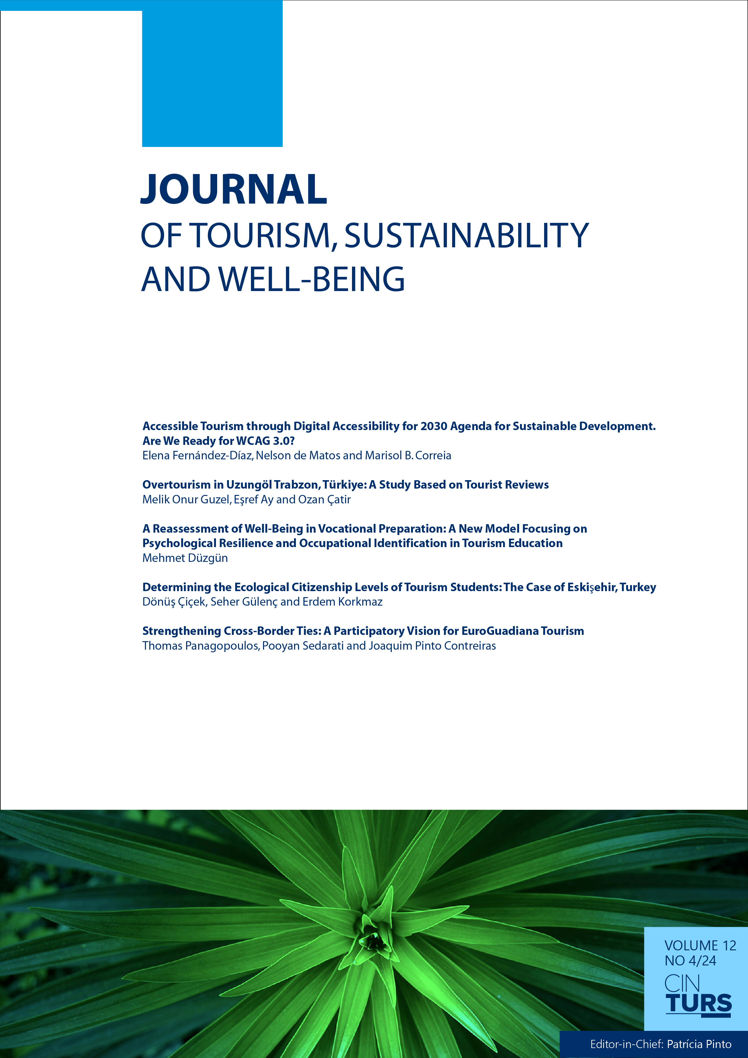 The final issue of JTSW in 2024 features five articles that highlight the importance of addressing challenges such as overtourism, digital accessibility and environmental awareness to create a more sustainable and equitable tourism industry. The first article provides a systematic quantitative literature review that demonstrates the growing importance of accessible tourism, particularly through digital accessibility. It shows that despite progress in digital accessibility regulations, the tourism sector is lagging behind in compliance, with significant gaps in awareness and implementation. The second article examines the phenomenon of overtourism in a popular tourist destination in Turkey by analysing tourist reviews on platforms such as TripAdvisor. This research highlights environmental, economic and socio-cultural issues related to overtourism, with a focus on environmental degradation caused by increased visitor numbers, rapid urbanisation and pollution. The third article explores the impact of psychological resilience and occupational identification on well-being in tourism education. The research suggests that educational institutions and policy makers should prioritise fostering resilience and addressing technostress in tourism education programmes to enhance long-term career success in the sector. The fourth article assesses the level of ecological citizenship among tourism students, highlighting the importance of environmental awareness among future tourism professionals. Finally, the fifth article discusses the EuroGuadiana initiative, a cross-border tourism project between Andalusia and the Algarve, which aims to develop a sustainable and dynamic tourism model through cooperation. Taken together, the five articles highlight the growing need for sustainability, resilience and inclusiveness in tourism development.